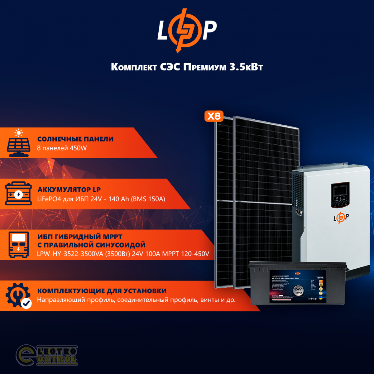 - 8 х Сонячна панель LP Longi Solar Half-Cell 450W (35 профиль. монокристалл)