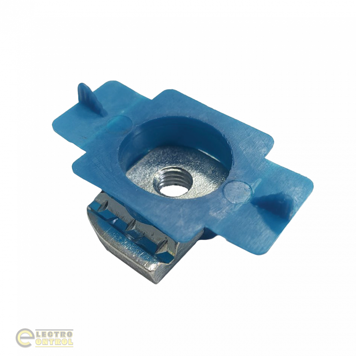 Гайка монтажна М8 із пластиковим фіксатором, для кріплення сонячних панелей. Форма гайки дозволяє зробити швидкий та надійний монтаж сонячних панелей, пластиковий корпус надійно утримує гайку в пазі напрямного профілю. Завдяки прямокутній формі гагка заводиться у профіль у будь-якому місці по довжині профілю після повороту на 90 градусів, вона фіксується пластмасовим фіксатором і надійно тримається та не провертається. При цьому гайку завжди можна перемістити на потрібну відстань по довжині напрямного профілю. Це дозволяє швидко та надійно змонтувати сонячні модулі. Навіть якщо при установці профілю було допущено незначні помилки, завдяки продуманій конструкції їх легко виправити.
