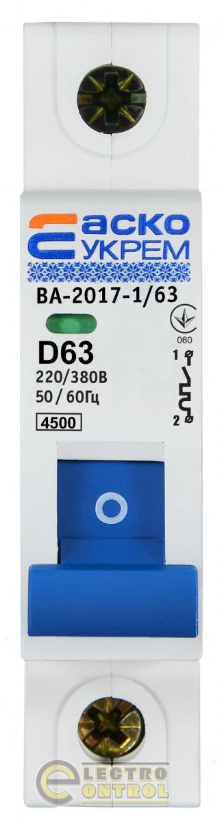 Автоматичний вимикач Аско-Укрем A0010170093 ВА-2017 D 1р 63А