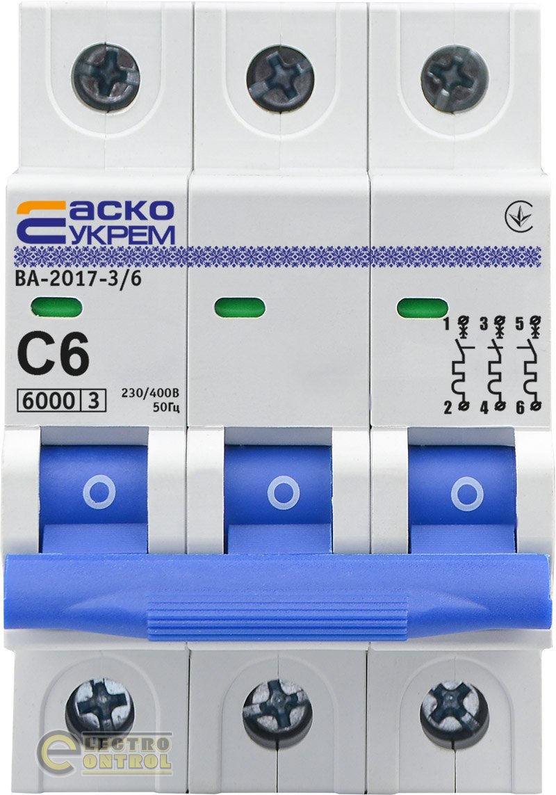 Автоматичний вимикач Аско-Укрем A0010170019 ВА-2017 С 3р 6А