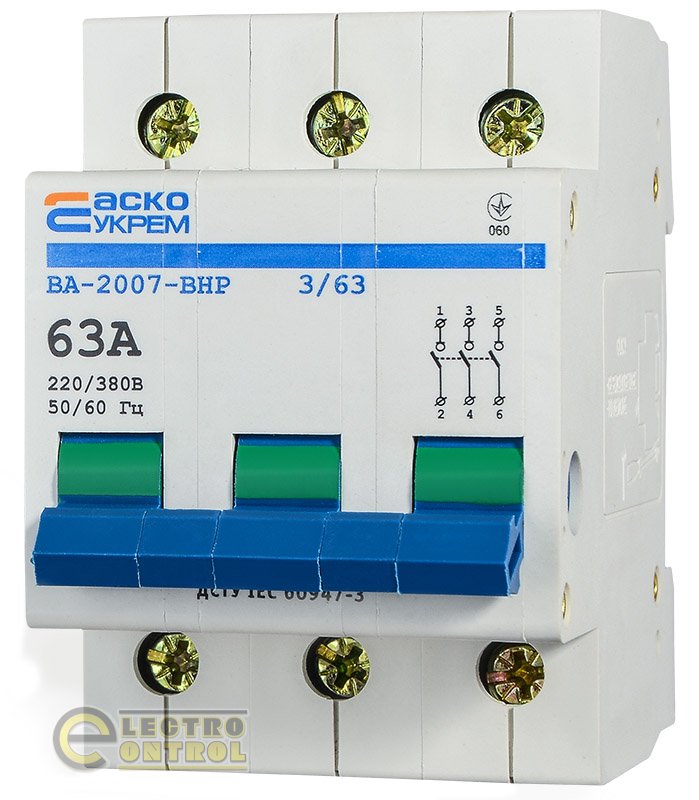 Вимикач-роз`єднувач УКРЕМ ВА-2007 ВРН 3р 40А АСКО