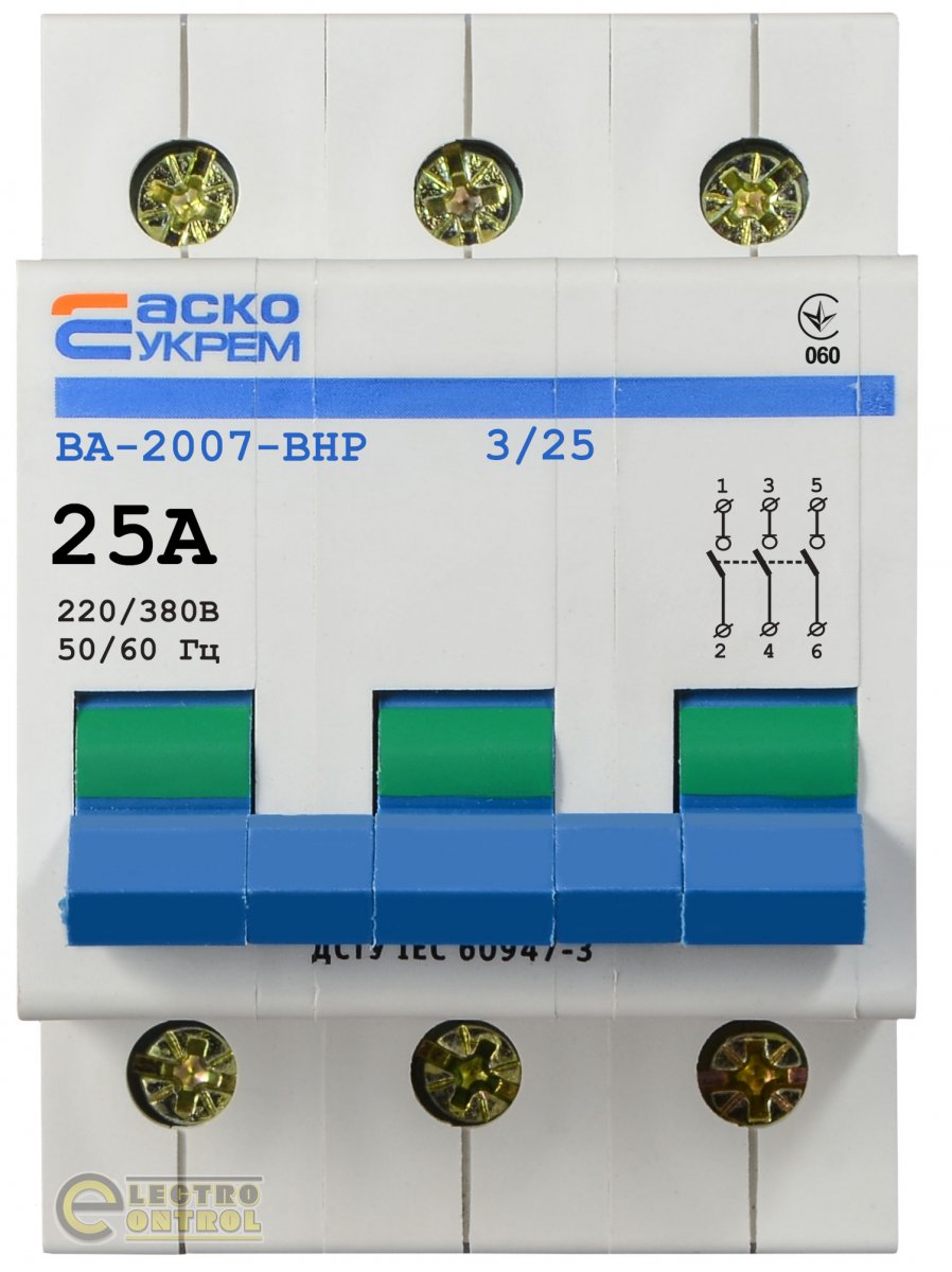 Вимикач-роз`єднувач УКРЕМ ВА-2007 ВРН 3р 25А АСКО