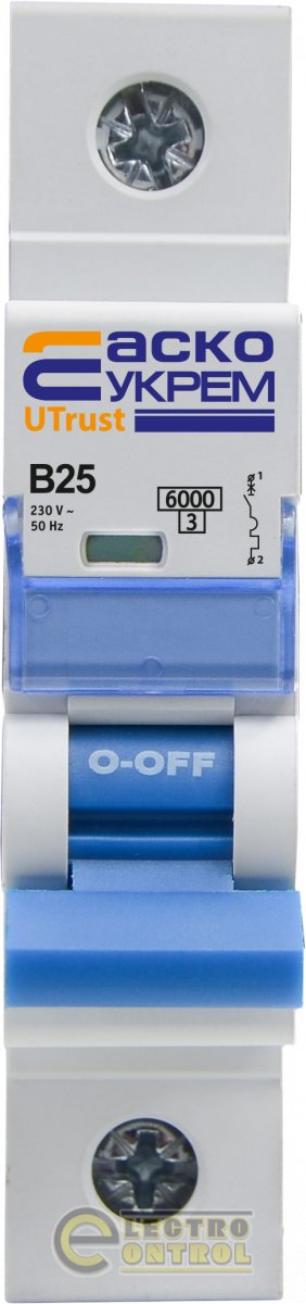 Модульний автоматичний вимикач Аско-Укрем A0010210010 UTrust 1р 25А B 6kА