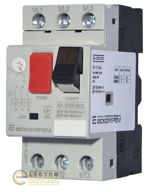 Автоматичний вимикач захисту двигуна Аско-Укрем A0010050008 ВА-2005 М20