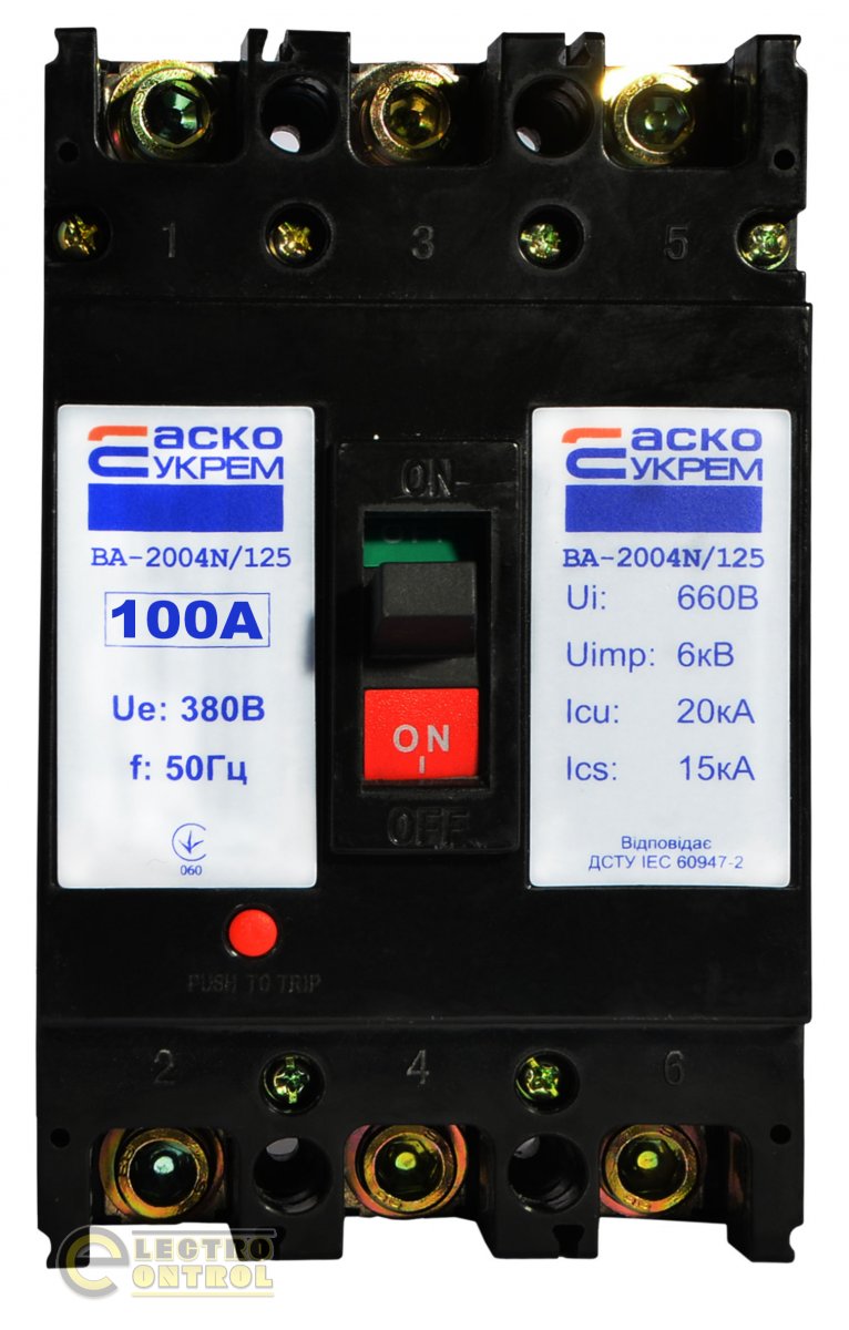 Автоматичний вимикач Аско-Укрем A0010040067 ВА-2004N/125 3р 100А АСКО