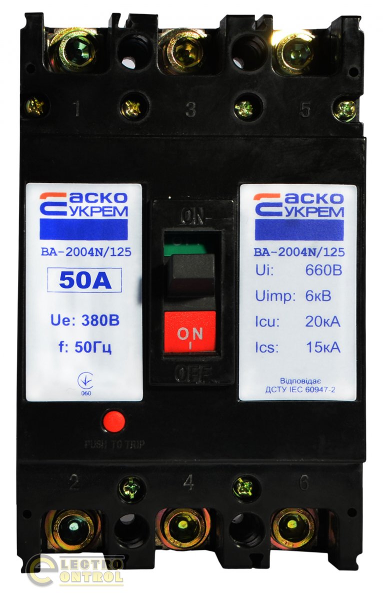 Автоматичний вимикач Аско-Укрем A0010040078 ВА-2004N/125 3р 50А АСКО