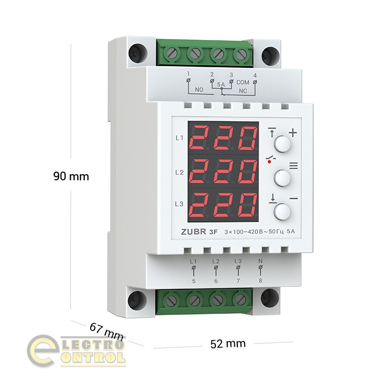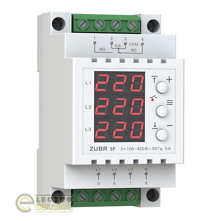 - Реле напряжения ZUBR 3F предназначено для защиты бытового и промышленного оборудования (в т.ч. трехфазных электродвигателей) от превышения допустимых пределов напряжения. Реле действует по принципу отсекателя: при наступлении аварийной ситуации оно отключает нагрузку.