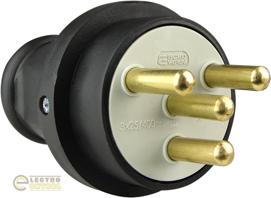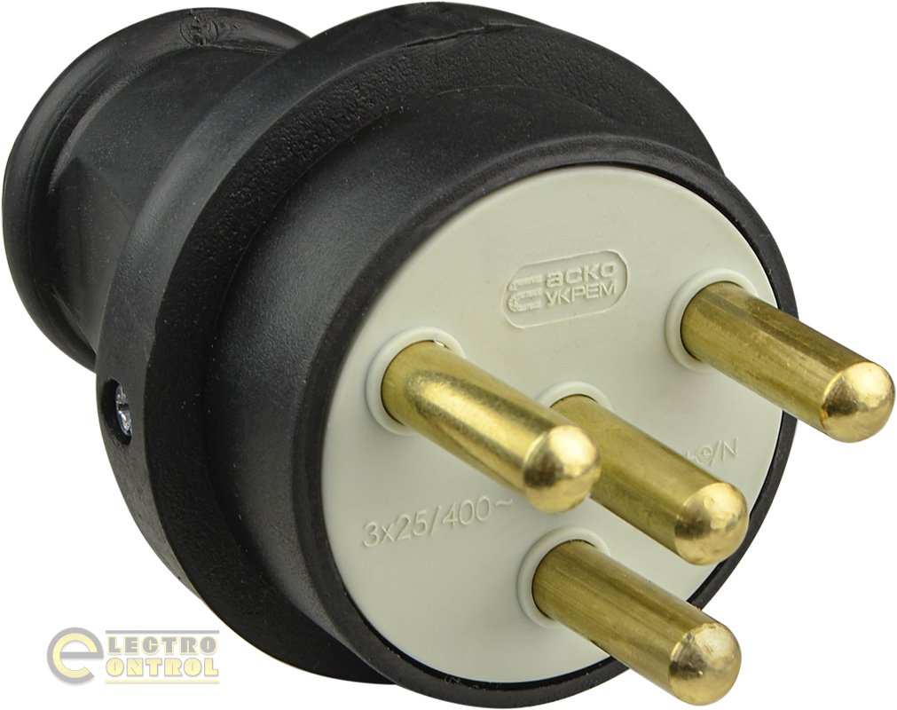 Вилка каучукова 3Р+РЕ 25А IP44