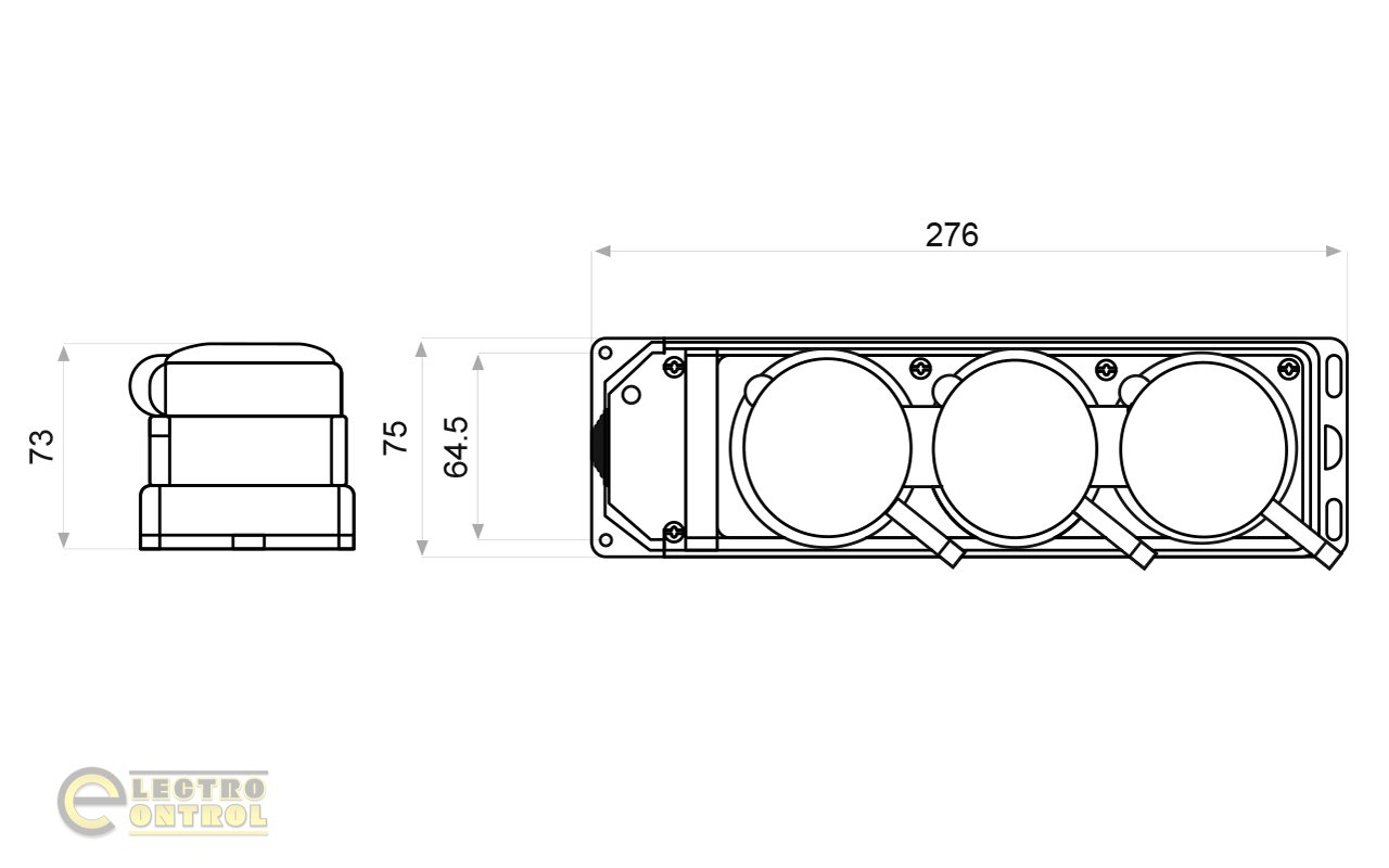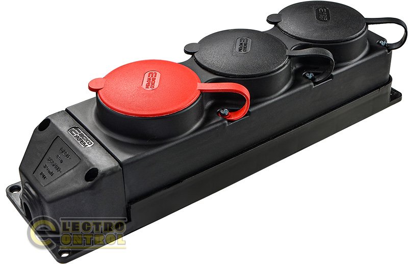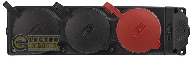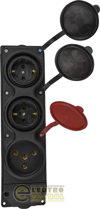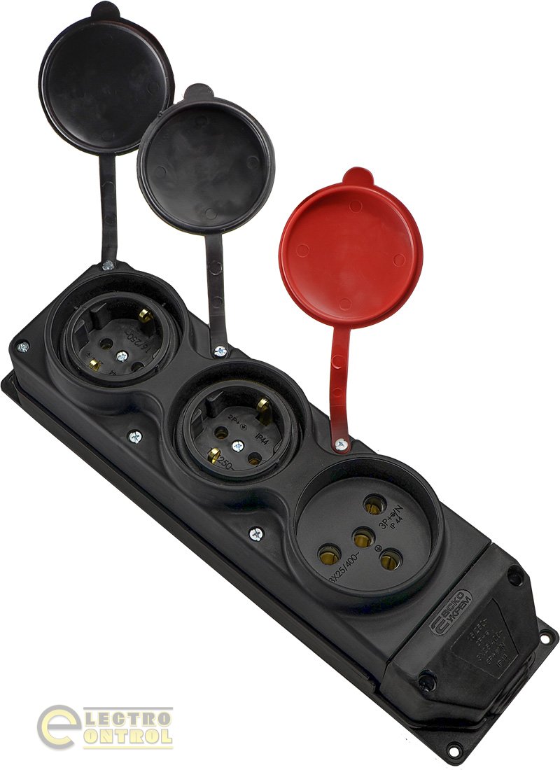 Колодка каучукова 3Р+РЕ з захисними кришками тримісна (1×25А/2×16A*2P+PE) IP44