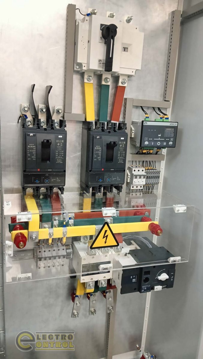Особливості конструкції щита автоматичного введення резерву із мотор-приводом АВР-400. Пристрій автоматичного введення резерву включає чотирі основні елементи: ввідний вимикач навантаження(якщо присутній ввід "Генератор"), ввідні автоматичні вимикачі, перемикач навантаження (або автомати) з мотор-приводом, контролер. Перемикання між вводами відбувається за допомогою автоматичних вимикачів, які перемикаються мотор-приводом. Мотор-привід, у свою чергу, управляється контролером, який знаходиться в корпусі мотор-приводу або окремо стоїть, залежить від конструктивного рішення заводу виробника.