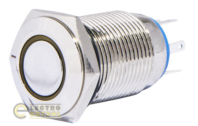 Кнопка Аско-Укрем A0140010101 TYJ 16-362 металева пласка з фіксацією 2NO+2NC з підсвічуванням жовта 220V