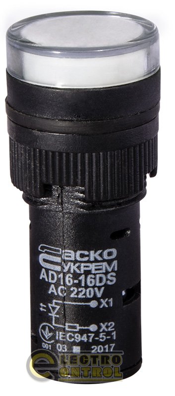 Сигнальна арматура Аско-Укрем A0140030040 AD16-16DS біла 220V АC