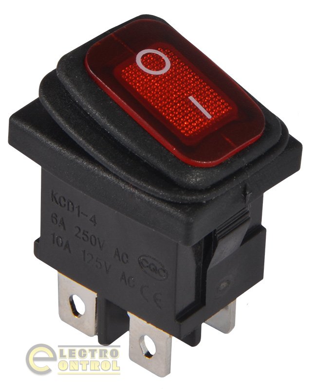 Перемикач Аско-Укрем A0140040064 KCD1-4-201NW R/B 220V 1 клав. вологозахисний червоний з підсвічуванням