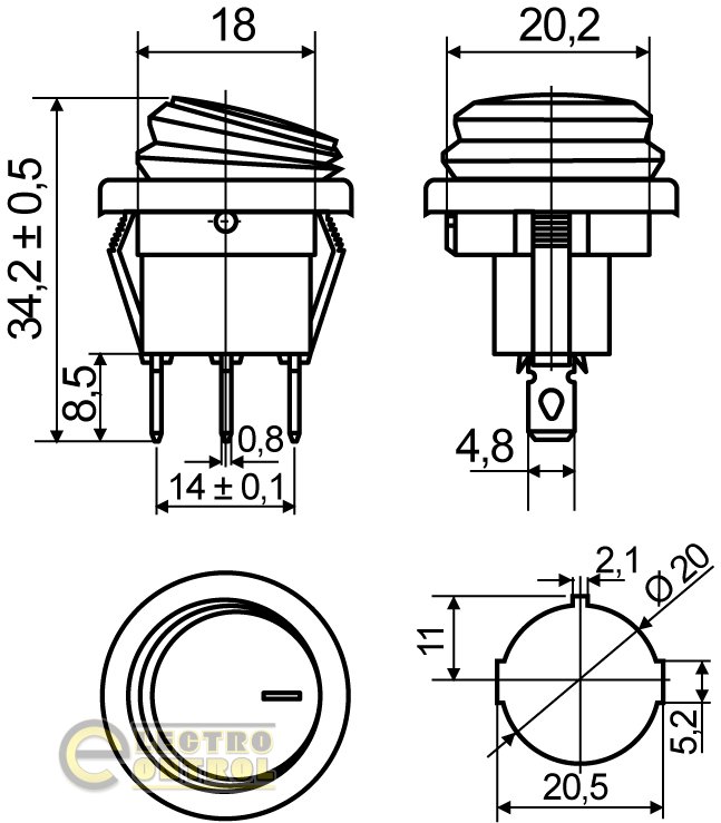 Перемикач Аско-Укрем A0140040073 KCD1-5-101W B/B 1 клав. круглий чорний вологозахищений