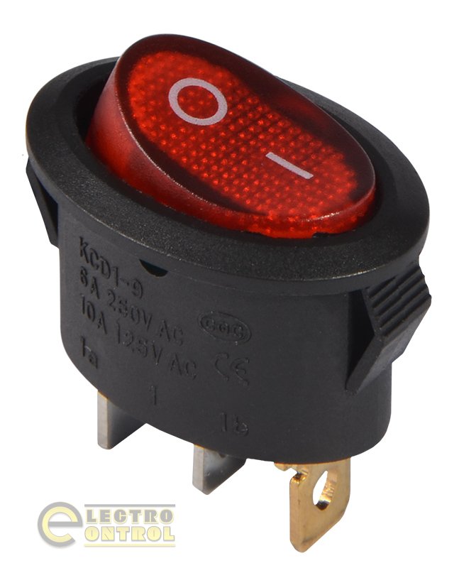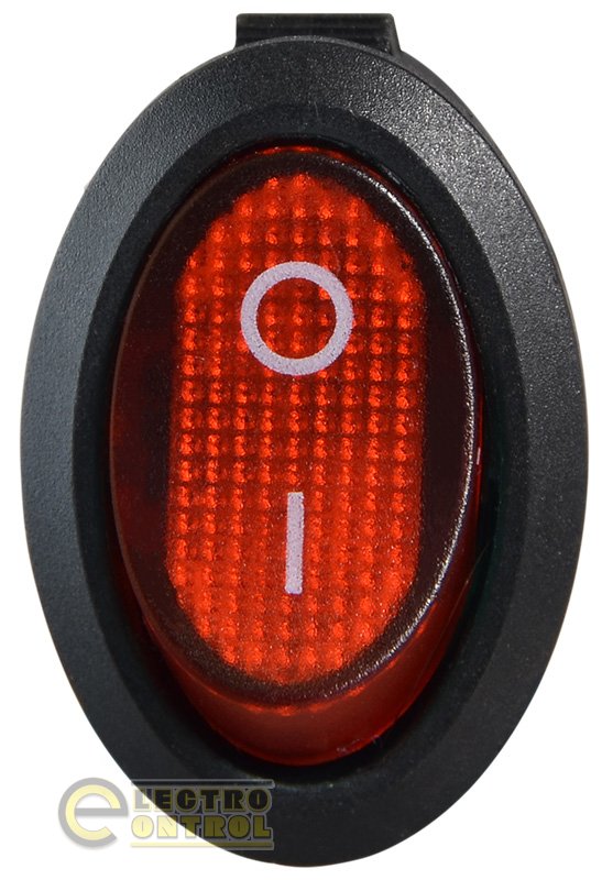 Перемикач Аско-Укрем A0140040087 KCD1-9-101N R/B 220V 1 клав. овал. червоний з підсвічуванням