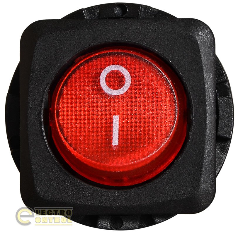 Перемикач Аско-Укрем A0140040093 KCD1-7-101N R/B 1 клав. з червоним підсвічуванням (кругла клавіша)