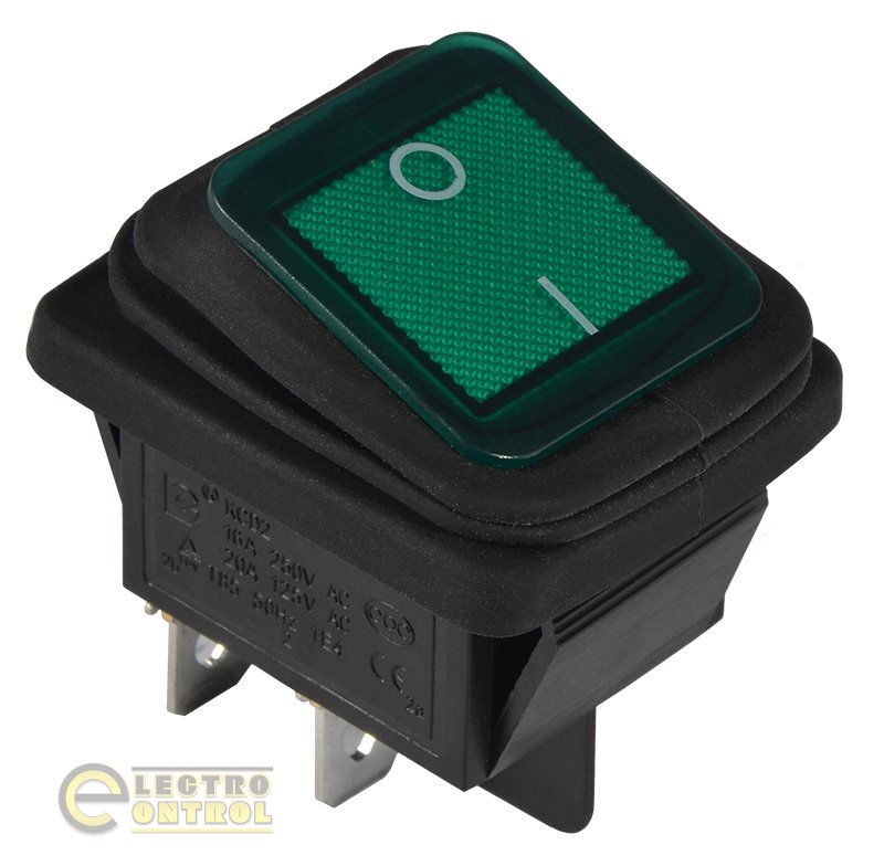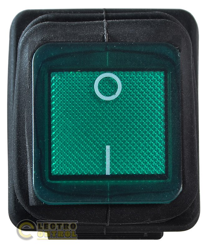 Перемикач Аско-Укрем A0140040115 KCD2-201NW GR/B 220V 1 клав. вологозахисний зелений з підсвічуванням