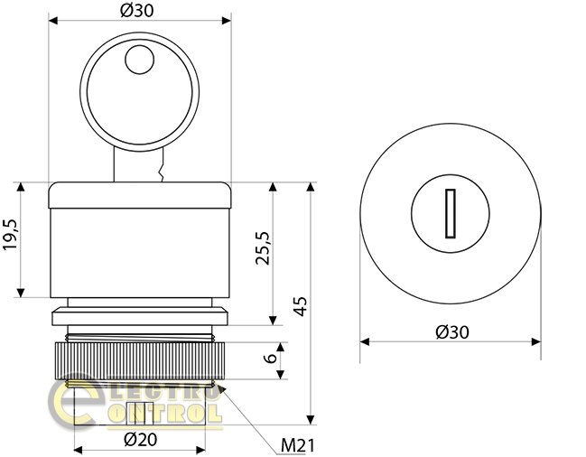 Ключ-бирка - штовхач з фіксацією, повернення ключем. D=30мм.