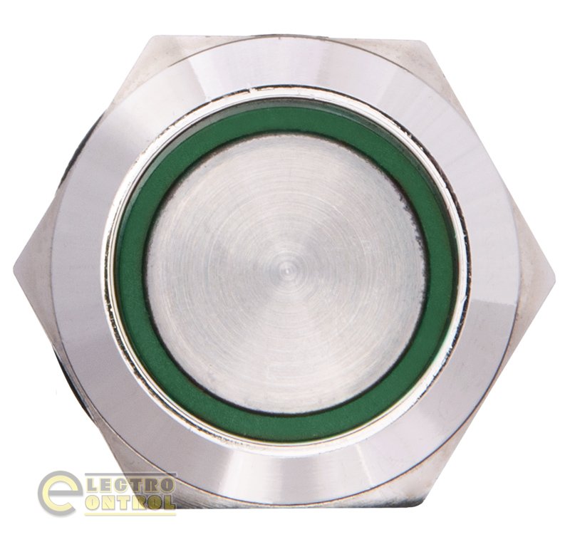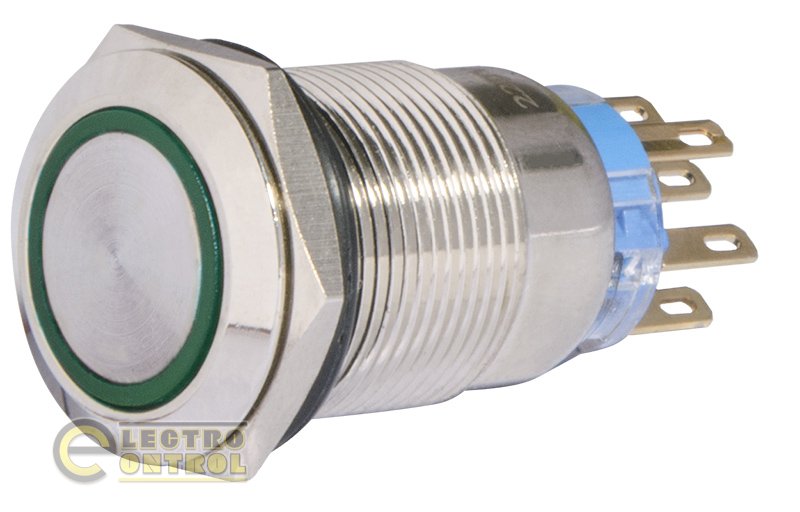Кнопка Аско-Укрем A0140010122 TYJ 19-372 металева пласка з фіксац. 2NO+2NC з підсвічуванням зелена 220V