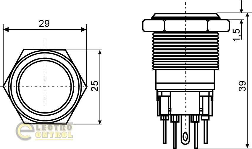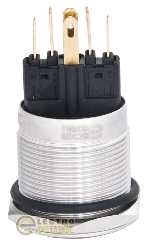 Кнопка Аско-Укрем A0140010136 TYJ 22-371 металева пласка з фіксац. 1NO+1NC з підсвічуванням червона 220V