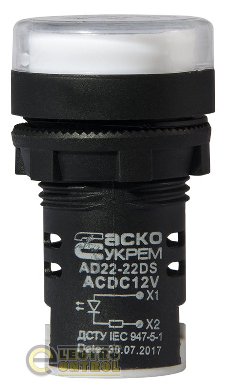 Сигнальна арматура Аско-Укрем A0140030160 AD22-22DS біла 12V АC/DC