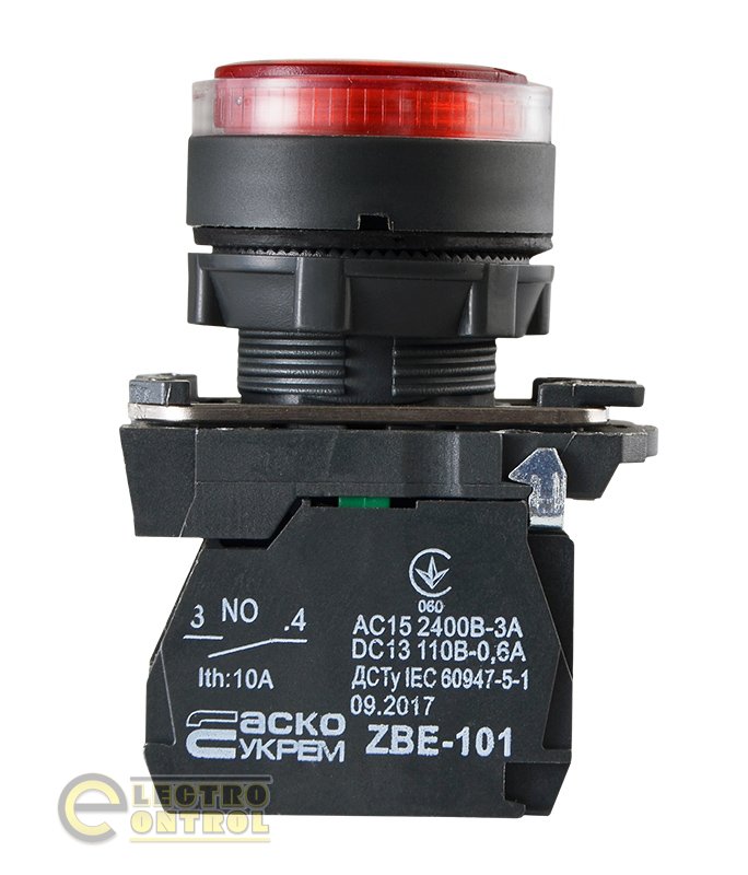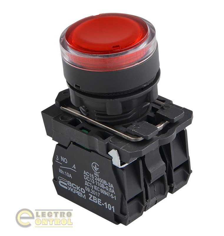 Кнопка Аско-Укрем A0140010174 TB5-AW34M5 з підсвічуванням червона