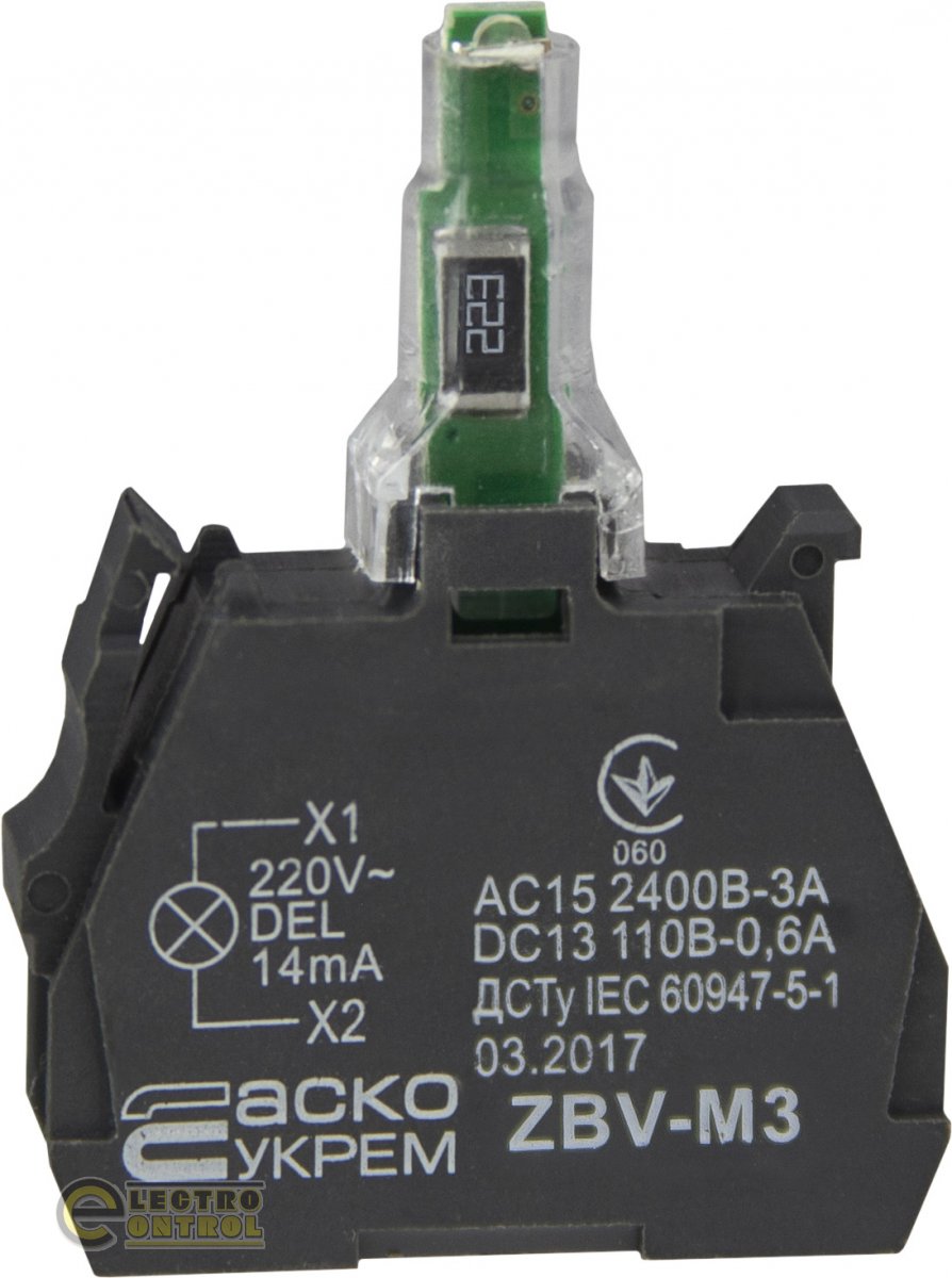 Блок Аско-Укрем A0140010219 ZBV-M3 для підсвіч. зелений 220В для кнопок TB5