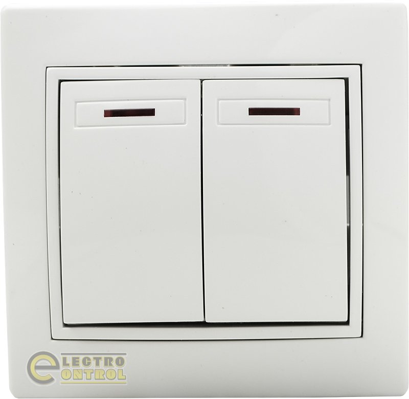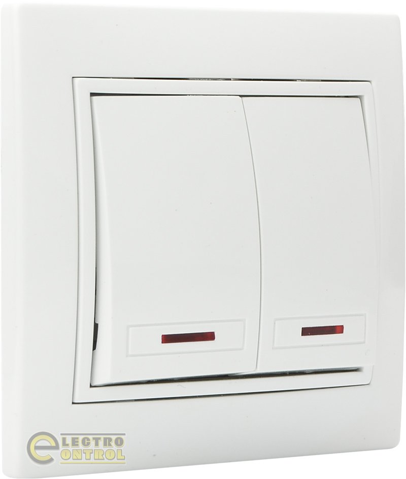 Вимикач Аско-Укрем двоклавішний з підсвічуванням BBсб10-2-1-Fl-W білий