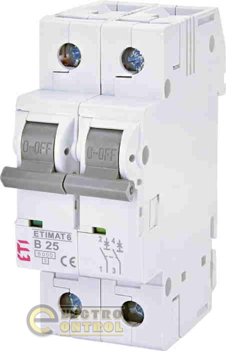 Серія автоматичних вимикачів із функцією захисту від струмів короткого замикання ETIMAT 6 2p B 25А призначена для використання в побутових і комунальних електромережах, а також у розподільних щитах, шафах управління тощо промислових споживачах невеликої потужності.