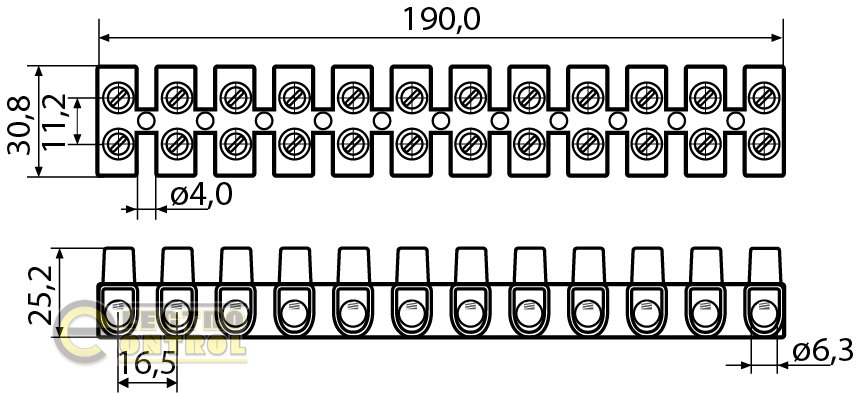 Клемна колодка Аско-Укрем A0130040025 25 мм2/60А чорна тип W (U)
