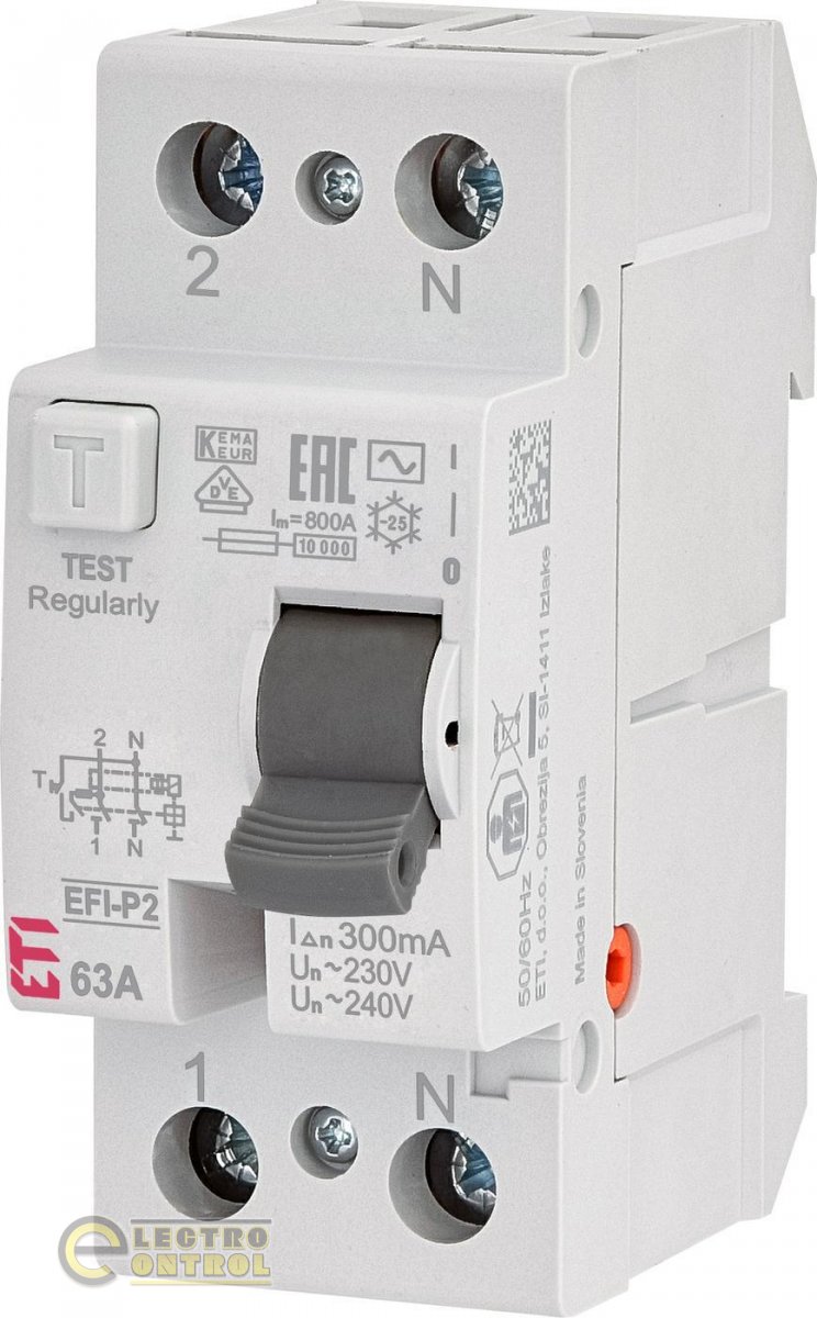 Реле диференційне (ПЗВ) ETI EFI-P2 2p 63 / 0,3 тип AC (10kA)