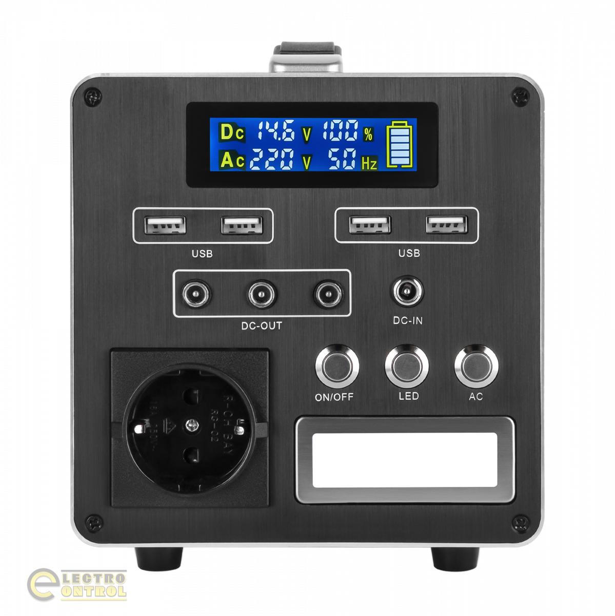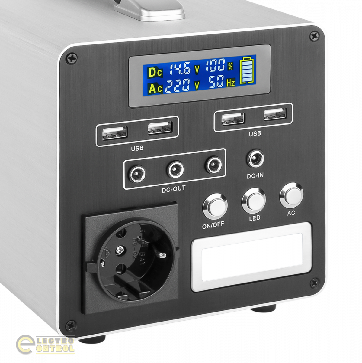 - Потужний інвертор 500 Вт: Забезпечує живлення електроприладів, таких як ноутбуки, міні-холодильники, електрочайники та багато іншого.