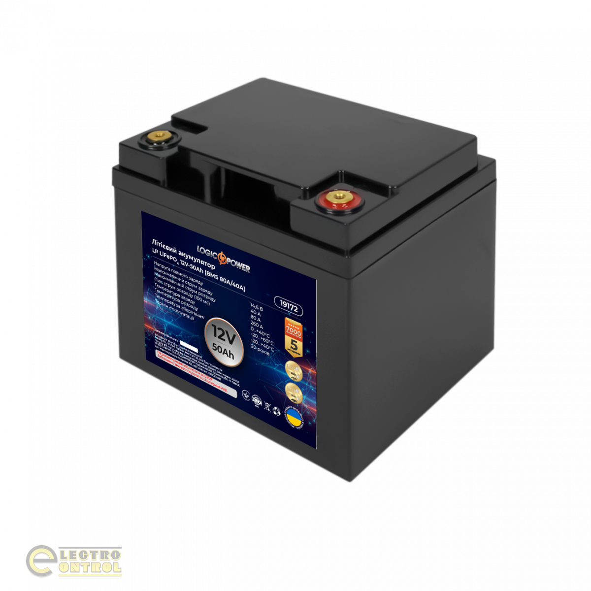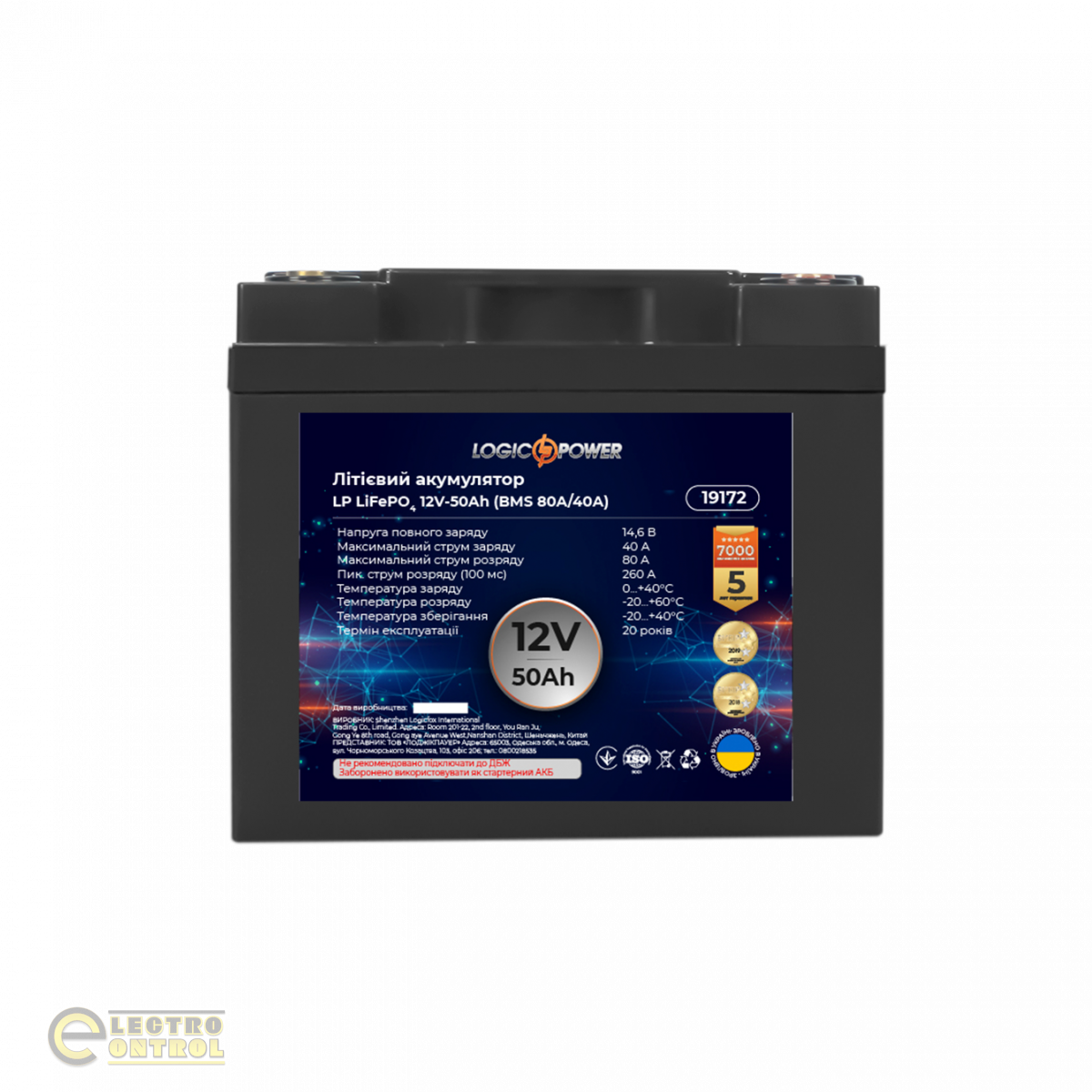 Акумулятор LP LiFePO4 12V (12,8V) - 50 Ah (640Wh) (BMS 80A/40А) пластик