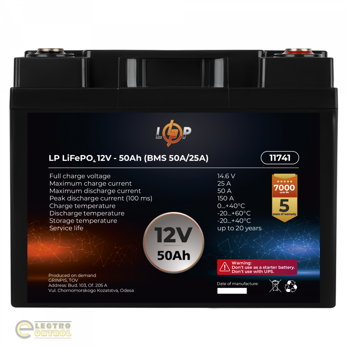 Акумулятор LP LiFePO4 12V (12,8V) - 50 Ah (640Wh) (BMS 50A/25A)