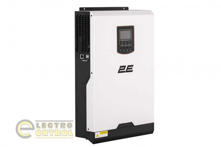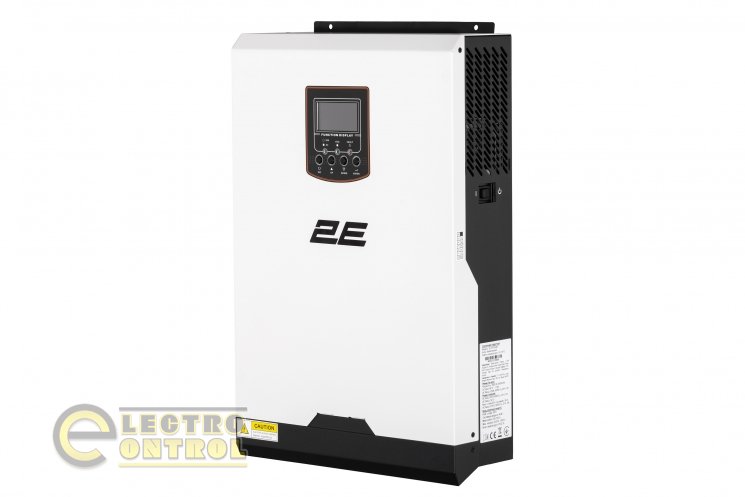 П’ятикіловатний інвертор 2E VP-5K48 оснащений вбудованими мережевим та сонячним ЗП, його допустимо підключати до масиву сонячних панелей загальною потужністю до 2 400 Вт. Вікно PWM: 105 В постійного струму. Батарейна опора інвертора 48 В, при цьому максимальний струм для пристрою, що заряджається, становить 110 А (комбінований).