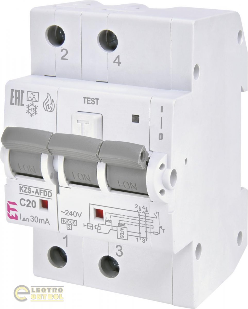 Диф автомат ETI KZS-AFDD 3M2p C 20 / 0,03 тип A 10kA 2173875