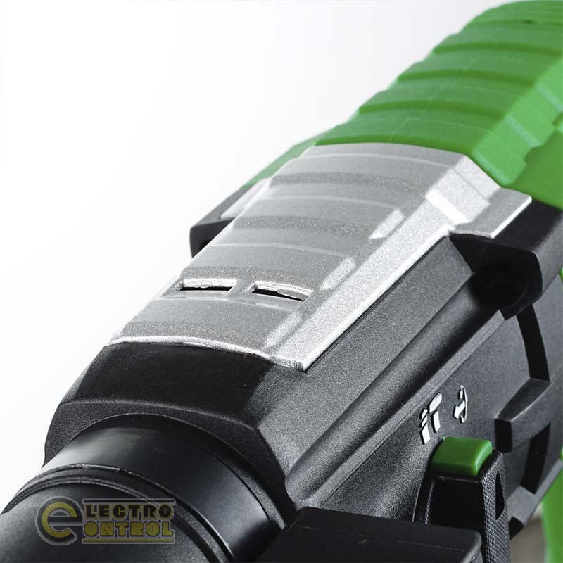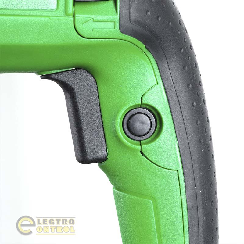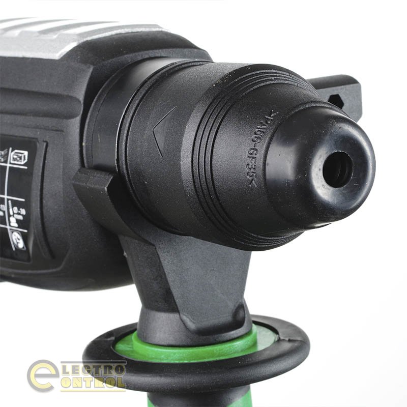 - Цей електроперфоратор оснащений регулятором обертів, який допомагає швидко підібрати потрібну частоту для комфортної роботи. Ручки перфоратора мають зручні гумові вставки, які забезпечують надійну посадку і фіксацію інструменту в руках у професіонала.