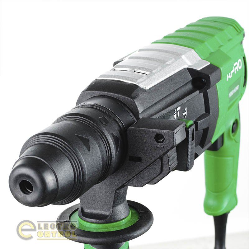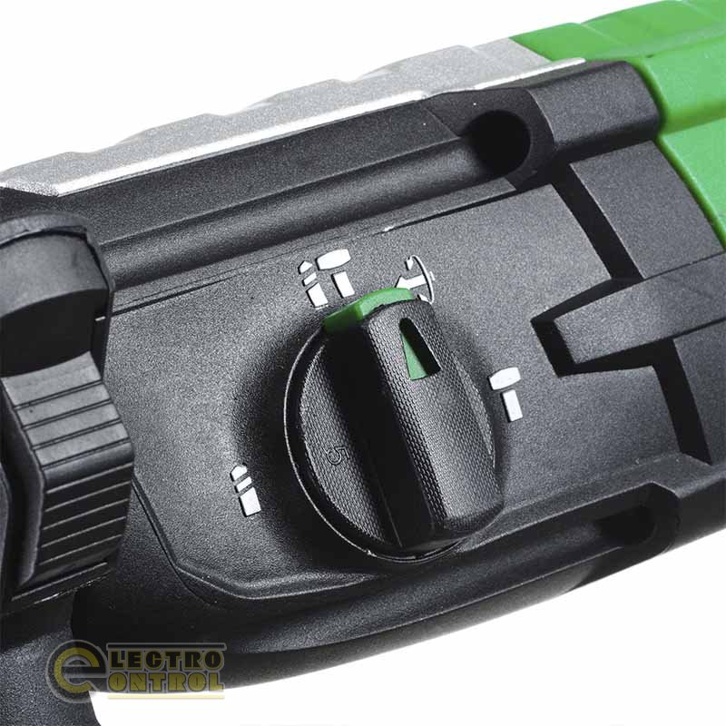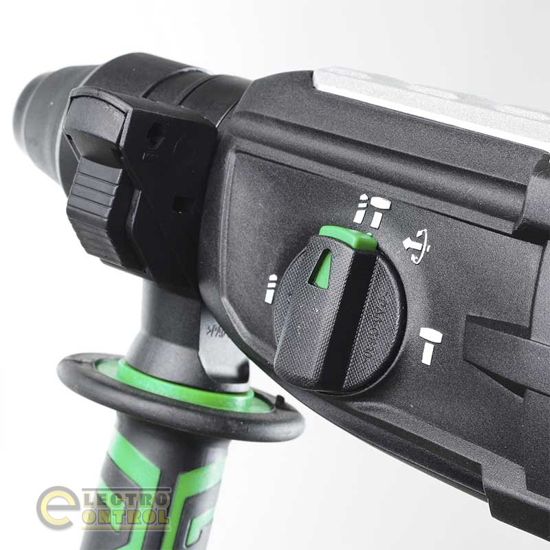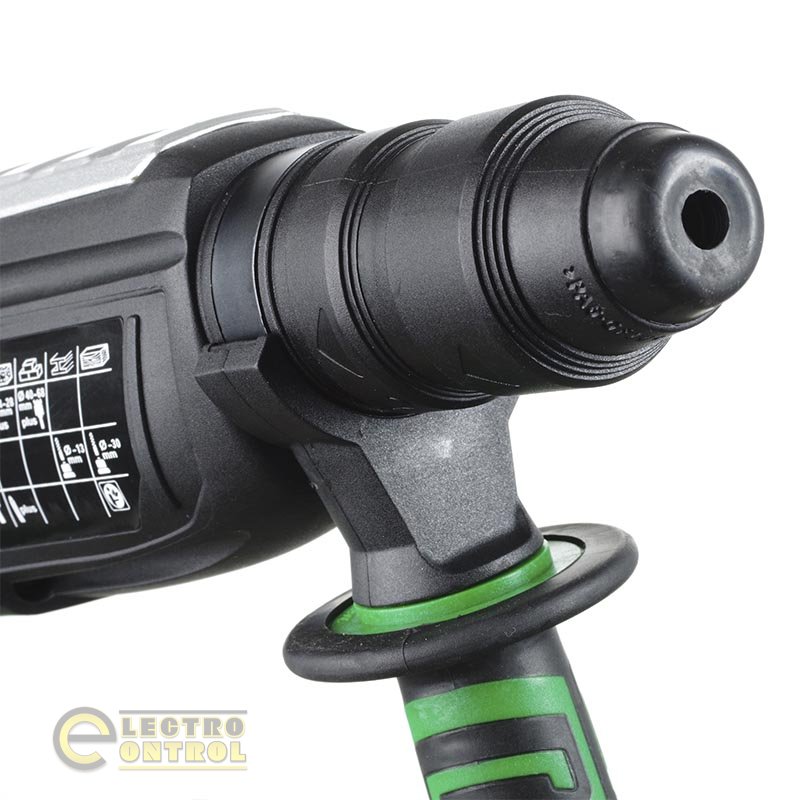 - Цей електроперфоратор оснащений регулятором обертів, який допомагає швидко підібрати потрібну частоту для комфортної роботи. Ручки перфоратора мають зручні гумові вставки, які забезпечують надійну посадку і фіксацію інструменту в руках у професіонала.