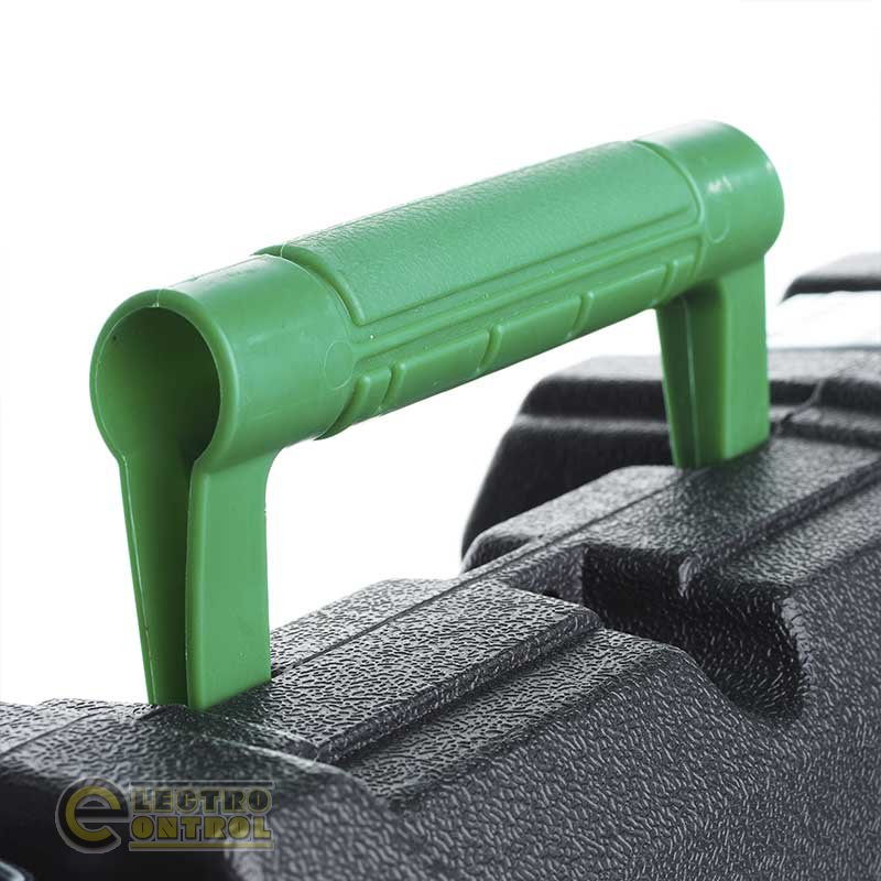 У комплекті з перфоратором із силою удару на 3,5 Дж йде кейс, який захищатиме ваш інструмент від зовнішнього впливу. До комплекту входять обмежувач глибини, 3 бури (6/8/10 мм) типу SDS+ і гарантують надійну фіксацію. Так само в кейсі знаходяться допоміжна рукоятка, долото та піку.
