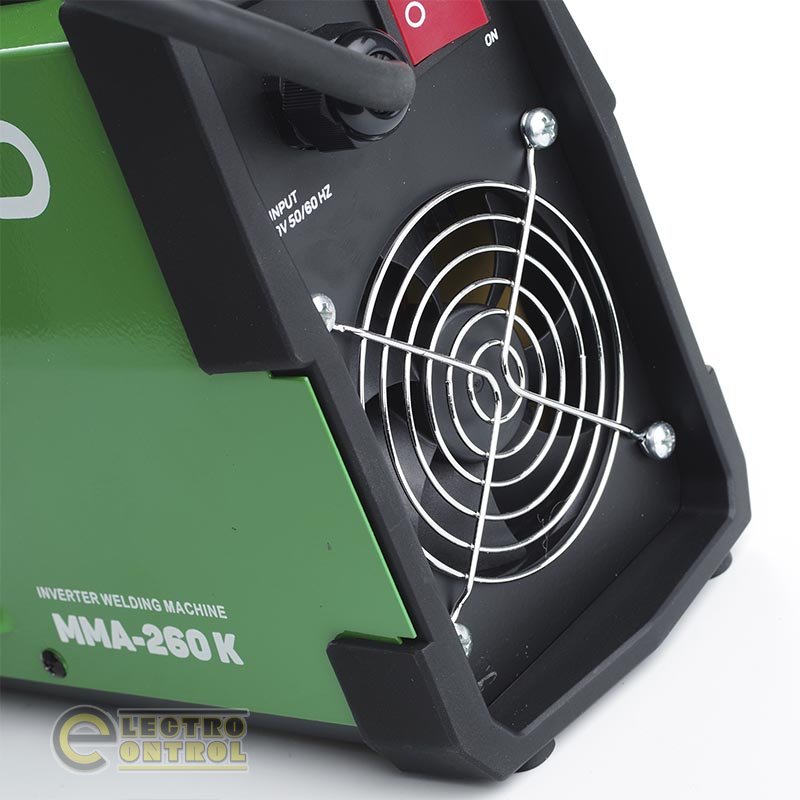 ММА-260 К потужний аппарат та дозволяє виконувати як побутові, так і професійні завдання. Дозволяє використовувати електрод діаметром 1,6-4мм. Коефіцієнт корисної дії інструменту складає 90% та дозволяє працювати в діапазоні зварювального струму від 20 до 260А. Мінімальна напруга мережі під навантаженням складає 180 В.