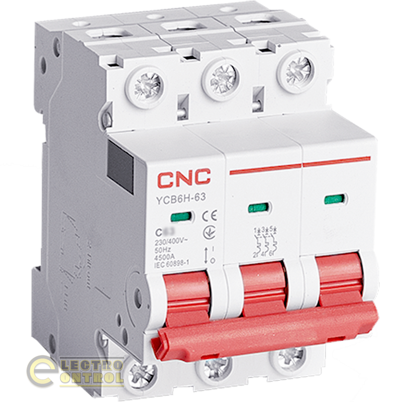 Вимикачі серії YCB6Н-63 на 20A відповідають стандарту ДСТУ EN 60947-2:2015 як у плані їхньої конструкції, так і технічних характеристик. Цей електричний вимикач має характеристику, що відключається, 4,5кА спроектований для роботи з номінальними струмами до 20A і категорія спрацьовування C YCB6Н-63 тип C мають розширену ширину полюса - 27 мм, на відміну від стандартних 18 мм. Це особливо важливо для забезпечення відповідності технічним характеристикам струмоведучих частин і надійного розриву потужної дуги, особливо за високих струмів короткого замикання. Завдяки цій особливості, автоматичний вимикач зі струмом напруги AC (змінний струм) ідеально підходять для застосування в мережах з високими струмами короткого замикання та потужними номінальними струмами, особливо в промислових лініях, де потрібен надійний захист від перевантажень і коротких замикань.Особливості автоматичного вимикача CNC YCB6Н-63 на 20A