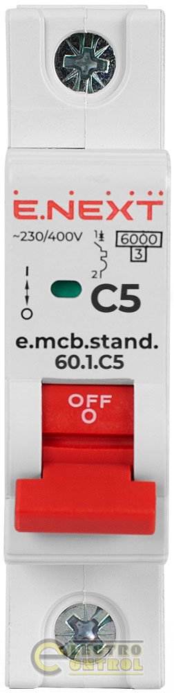 Для промислових і побутових застосувань можуть бути використані модульні автоматичні вимикачі Enext. Вони можуть захищати ланцюги змінного струму напругою від перевантаження та коротких замикань (струмів короткої дії), також мають можливість оперативного вмикання/вимикання їх на об'єктах будь-якої площі. Вимикач Enext серій - e.mcb.stand.60 спроектований для роботи з номінальними струмами до 6кА, категорія спрацьовування: C, число полюсів: однополюсний 1р артикул: s002105, здатність відключення: 6кА