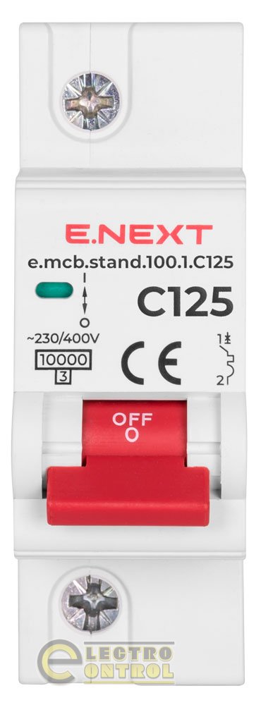 Для промислових і побутових застосувань можуть бути використані модульні автоматичні вимикачі Enext. Вони можуть захищати ланцюги змінного струму напругою від перевантаження та коротких замикань (струмів короткої дії), також мають можливість оперативного вмикання/вимикання їх на об'єктах будь-якої площі. Вимикач Enext серій - e.mcb.stand.100 спроектований для роботи з номінальними струмами до 10кА, категорія спрацьовування: C, число полюсів: однополюсний 1р артикул: s002207, здатність відключення: 10кА