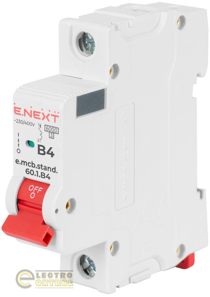 Для промислових і побутових застосувань можуть бути використані модульні автоматичні вимикачі Enext. Вони можуть захищати ланцюги змінного струму напругою від перевантаження та коротких замикань (струмів короткої дії), також мають можливість оперативного вмикання/вимикання їх на об'єктах будь-якої площі. Вимикач Enext серій - e.mcb.stand.60 спроектований для роботи з номінальними струмами до 6кА, категорія спрацьовування: B, число полюсів: однополюсний 1р артикул: s001104, здатність відключення: 6кА