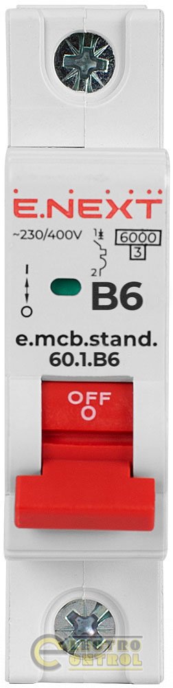 Для промислових і побутових застосувань можуть бути використані модульні автоматичні вимикачі Enext. Вони можуть захищати ланцюги змінного струму напругою від перевантаження та коротких замикань (струмів короткої дії), також мають можливість оперативного вмикання/вимикання їх на об'єктах будь-якої площі. Вимикач Enext серій - e.mcb.stand.60 спроектований для роботи з номінальними струмами до 6кА, категорія спрацьовування: B, число полюсів: однополюсний 1р артикул: s001106, здатність відключення: 6кА