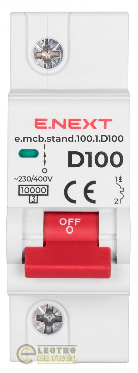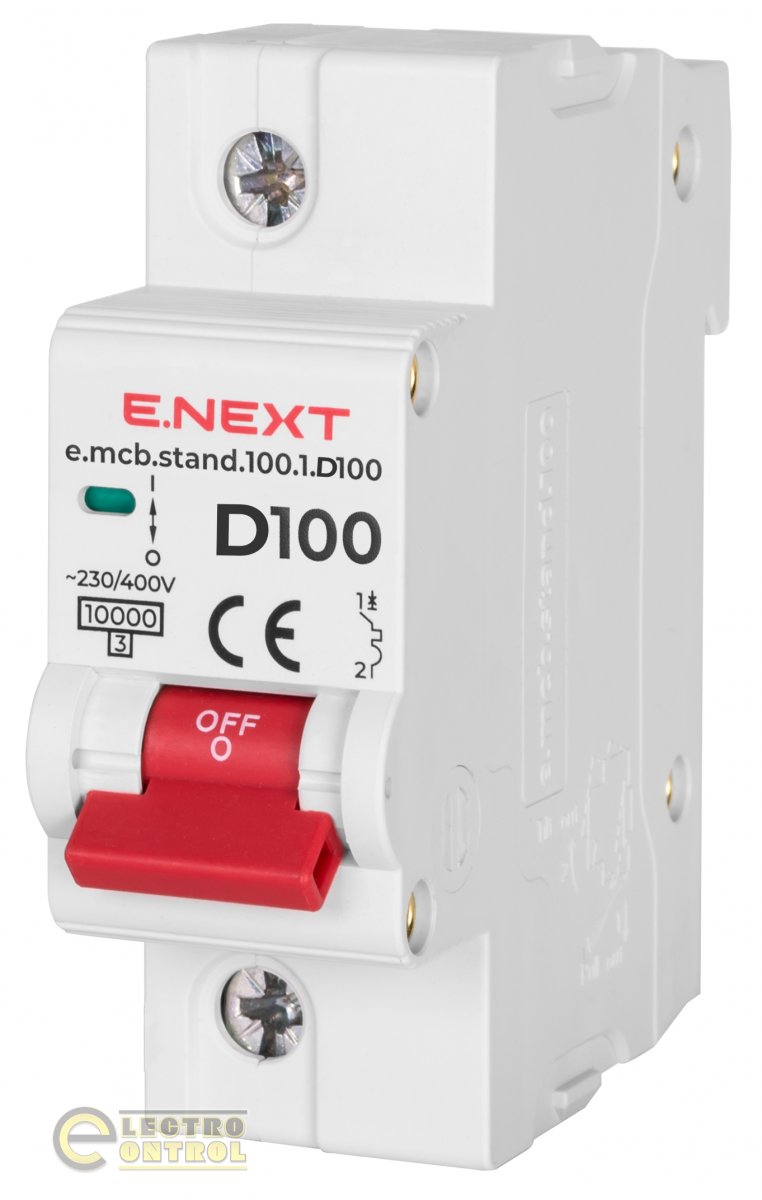 Для промислових і побутових застосувань можуть бути використані модульні автоматичні вимикачі Enext. Вони можуть захищати ланцюги змінного струму напругою від перевантаження та коротких замикань (струмів короткої дії), також мають можливість оперативного вмикання/вимикання їх на об'єктах будь-якої площі. Вимикач Enext серій - e.mcb.stand.100 спроектований для роботи з номінальними струмами до 10кА, категорія спрацьовування: D, число полюсів: однополюсний 1р артикул: s026013, здатність відключення: 10кА