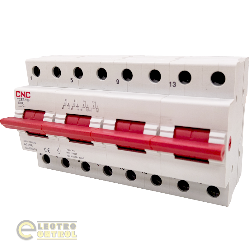 Модульні перемикачі навантаження YCBZ-100 (виробник «CNC ELECTRIC GROUP CO., LTD») призначені для оперативного перемикання джерела живлення (мережа - генератор) в електричних колах змінного струму частотою 50/60Гц напругою до 240/415В. Пристрій має загальний верхній контакт та рукоятку керування трипозиційним станом контактів (1-0-2). Конструкція та технічні характеристики перемикачів навантаження відповідають ДСТУ EN 60947-3 та вимогам діючих стандартів з електромагнітної сумісності обладнання.