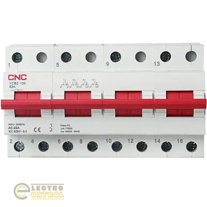 Модульні перемикачі навантаження YCBZ-100 (виробник «CNC ELECTRIC GROUP CO., LTD») призначені для оперативного перемикання джерела живлення (мережа - генератор) в електричних колах змінного струму частотою 50/60Гц напругою до 240/415В. Пристрій має загальний верхній контакт та рукоятку керування трипозиційним станом контактів (1-0-2). Конструкція та технічні характеристики перемикачів навантаження відповідають ДСТУ EN 60947-3 та вимогам діючих стандартів з електромагнітної сумісності обладнання.