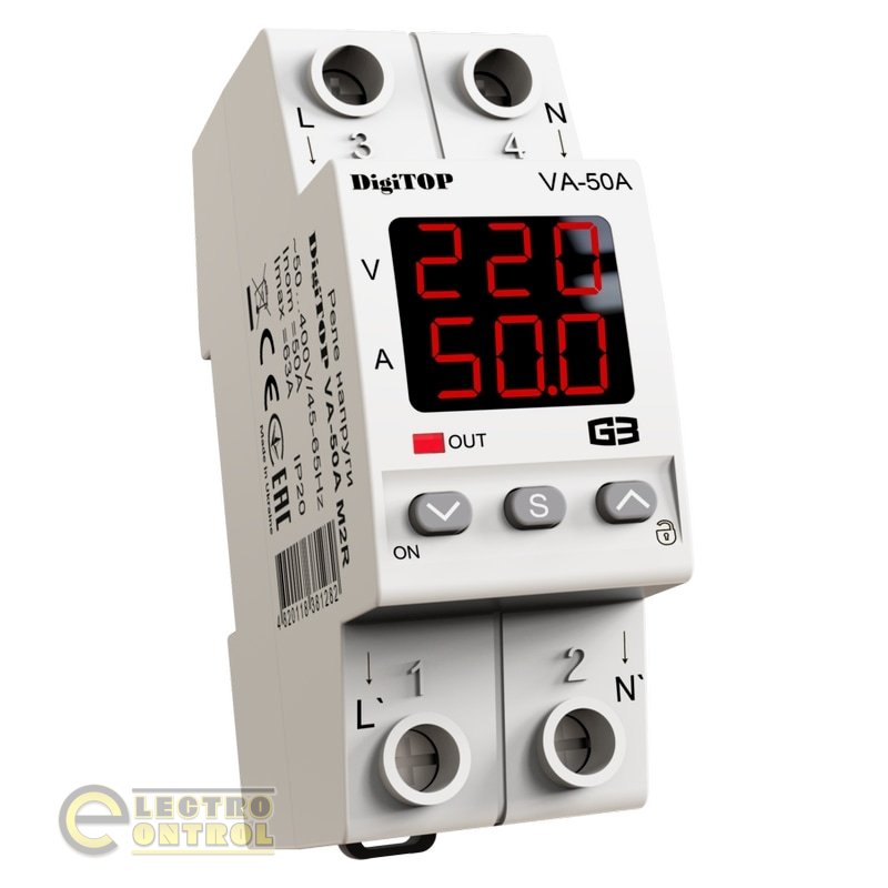 Реле напруги з контролем струму DigiTop VA-50A M2R