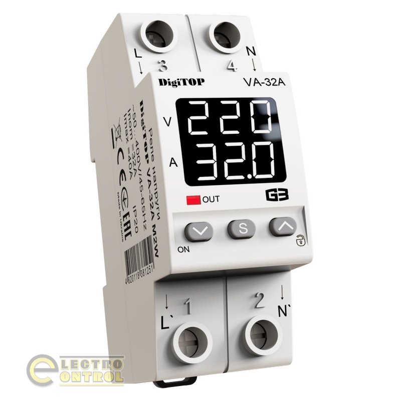 Реле напруги з контролем струму DigiTop VA-32A M2W